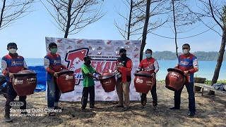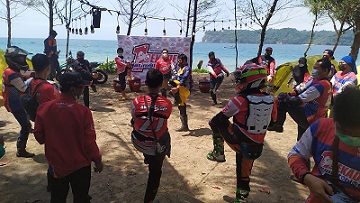 Sekitar pukul 09.00 WIB, dilangsungkan juga acara bakti sosial ringan pada pengelola pesisir berupa tempat sampah yang diserahkan langsung oleh kami, dan perwakilan dari MPM Honda Jatim. Beres baksos, tinggal acara penutup yaitu masuk jalur offroad lagi untuk bisa pulang. Weh..jian mantul ultah kali ini, meski sayang, saia gak bisa join, hiksss