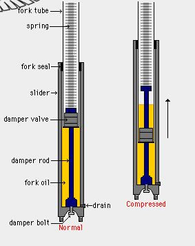Bedanya apa sih? Yang jelas, secara kasat mata adalah bentuk yang sama yaitu batang yang punya as bergerak naik turun. Pembeda utama adalah posisi as dan tabungnya. Eh, sebelumnya, supaya gampang, bagian sokbreker depan secara garis besar ada 2, yaitu as sokbreker (fork tube) dan tabung sokbreker (fork slider). As sokbreker, diidentifikasi dengan rupa batang dipoles krom mengkilap, sedang tabung sokbeker adalah bagian tempat as bergerak naik-turun