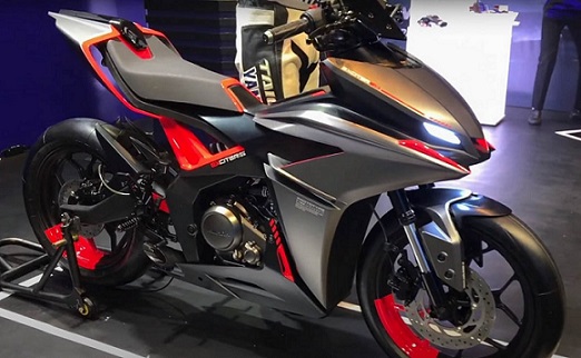 Punya desain serba tajam di garsi bodinya, yang dikombinasikan dengan bentukan jok bertingkat. Aksesoris visor di batok kepala punya shape tajam untuk menutupi setang dengan desain menekuk, yang sporty banget, racy. Sementara bagian bodi belakang terlihat keren dengan sirip-sirip ala aerofin layaknya moge. Panel instrumennya punya bentuk minimalis, terlihat bagian speedometer hanya terinstall pengukur putaran mesin alias rpm, petunjuk gigi dan kecepatan saja. Sangat simpel
