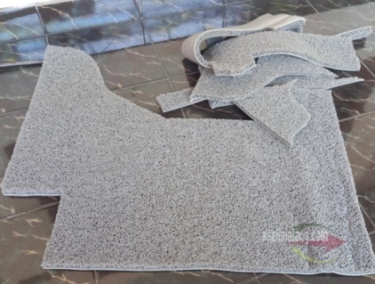 Sampai di rumah, sambil istirahat, saia minta tolong anak sulung untuk mencopot karpet karet Silvy. Yaitu sepasang karpet depan, selembar karpet tengah dan karpet bagasi yang lebar dan panjang. Gunanya, sebagai mal alias pola untuk memotong si karpet bihun.