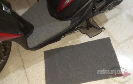 Dengan ukuran panjang 3 meter, ternyata masih ada sisa potongan karpet bihun. Saia potong ulang, dan hasilnya, adalah sepotong keset kamar mandi dan 1 set karpet dek Honda Vario 110 kendaraan dinas nyonya. Lumayan….