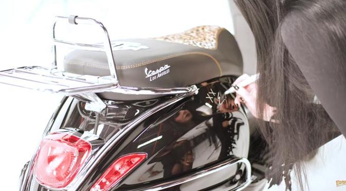 Nama resminya adalah Vespa Primavera Elvira Macabre Limited Edition. Busyet, cakep ya namanya Dibuat khusus untuk memperingati 40 tahun perayaan Elvira Macabre. Makanya, produksinya juga amat sangat terbatas, 40 unit persis, nggak kurang nggak lebih