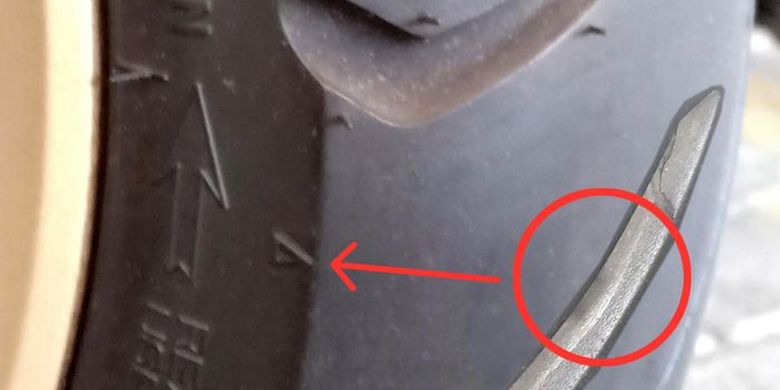 Ban yang aus, atau sudah nggak layak pakai, bisa dipantau pula melalui tanda tertentu pada dinding ban. Pada sisi ban, ada tanda TWI alias tire wear indicator, berbentuk segitiga. Caranya, bila tepian ban makin mendekati tanda segitiga TWI, monggo, disarankan segera ganti ban, karena pasti tapak/alur ban menipis. Alur menipis, diikuti pula menipisnya karet ban, sehingga rawan bocor.