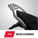 Paling utama dan terutama dalah rear carrier. Benda yang bakal dipasang menggantikan behel belakang ini, berfungsi sebagai braket box CB150X. Dengan dudukan ini, pemilik lebih mudah untuk memasang top box berbagai merk. Cukup melepas behel belakang, dan pasang ini benda, dan dilanjut dengan memasang plate dudukan bawaan box. Tersedia satu warna saja yakni silver/abu-abu, padahal umumnya kan nih perangkat kelirnya hitam. Punya bahan aluminium kuat, dan braket ini dijual dengan harga IDR 900.000