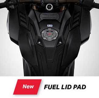 Bergeser ke atas, bagian tangki ada tersedia 2 aksesoris. Yaitu fuel lid pad yang dipasang pada bagian tutup tangki bahan bakar. Selain itu juga berfungsi untuk melindungi tutup tangki agar tidak mudah tergores, tampilan area tutup tangki juga lebih apik nih, dengan nuansa mnotif karbon. Berbahan sticker resin sementara dibaliknya, tersedia perekat 3M. Nih benda, harganya hanya IDR 50.000 saja
