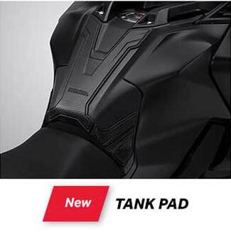 Aksesoris terakhir adalah tank pad CB150X. Pelindung bagian atas tangki dari goresan, utamanya sabuk pengendara atau benda lain ini, berbahan karet silikon yang berwarna hitam modtif karbon. Keren sih, serta lebar, sehingga maksimal melindungi bagian atas tangki bensin CB150X. Seperti biasa, sudah dilengkapi perekat 3M, yang tinggal tempel saja di tangki. Harganya ? IDR 150.00 masbro..