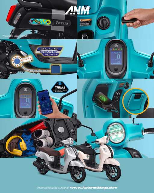 Desain Fazzio ini aseli fresh, simple dan modern. Sabi nih, jawaban untuk generasi muda yang ingin mengekspresikan dirinya melalui kendaraan. Yamaha Fazzio Hybrid Connected sudah dilengkapi dengan fitur yang smart dan teknologi modern melalui mesin Blue Core Hybrid dan Yamaha Motorcycle Connect yang sudah terconnect dengan aplikasi Y-Connect di smartphone.