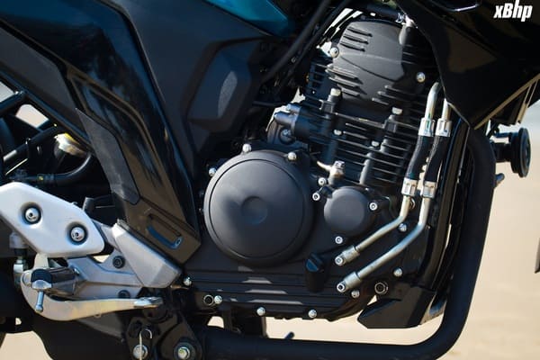 Punya basis 1 silinder saja, nih mesin FZS 25 ‘hanya’ menggunakan 2 katup serta pendingin udara,alias andalkan sirip-sirip di blok mesin. Catatan spek teniksnya, mampu keluarkan tenaga maksimumnya 20.9 PS/8.000 rpm dan torsi 20 Nm/6.000 rpm. Kecil? Memang iya, namun torsinya nendang, khas mesin silinder tunggal. Untungnya, terbantu dengan bobot motor yang terbilang ringan untuk kelas 250cc, yaitu hanya 18 kg.