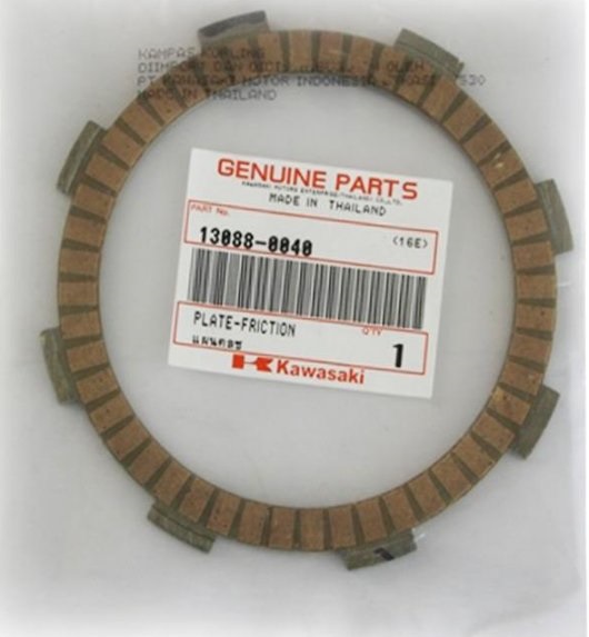 Alhasil, kalau di putaran bawah memang rada lembek :mrgreen:, sering yang nggak biasa, main kopling supaya lebih terasa tenaganya, padahal ya malah bikin kampas kopling cepat aus. Kampas kopling CB150R generasi 1 alias Old CB, orisinalnya dibanderol lumayan, IDR 250 ribuan, dengan rincian sebanyak 5 lembar kampas kopling