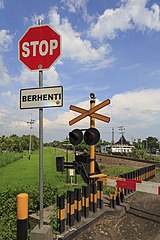 Tanda Stop, misalnya, itu berarti ada atau tidak ada kereta yang lewat, pengendara jalan wajib berhenti sejenak. Itu untuk memastikan aman atau tidak dia untuk melintas. Kalau sudah aman, baru dia boleh jalan. Jadi, setiap lewat di perlintasan KA, tidak boleh ada yang langsung lewat. Jadi, sebaiknya, kala berkendara baik motoran atau naik mobil, silakan berhenti sejenak sebelum melintasi rel KA dan memastikan situasi aman tidak ada KA mendekat, baru deh dilewati itu perlintasan rel.