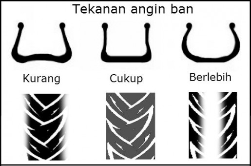Sejatinya, angin atau udara dalam ban juga berfungsi sebagai bantalan, meredam jalan yang tak rata. Tahu kan kasur angin? Kalau tekanan angin pas, bakal mentul-mentul nyaman. Beda kalau kelebihan, hembokkk..keras cak. Efek serupa dengan ban motor yang kelebihan tekanan angin.. bantingan jalan rusak bakal lebih keras, serasa sokbreker rusak/mati.