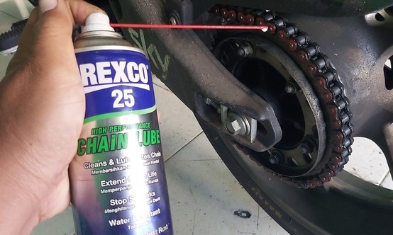 Rantai yang kering dan berkarat akan lebih cepat aus, bahkan akan timbul suara berisik saat motor sedang berjalan. Cara merawat rantai motor pun tidak sulit, Rantai cukup sering kita semprot menggunakan pelumas khusus rantai. Jangan lakukan melumasi rantai menggunakan oli bekas atau gemuk karena justru bisa menambah kotor permukaan komponen tersebut. Salah satu pelumas yang bisa digunakan untuk rantai adalah menggunakan Rexco 25 setiap seminggu sekali agar tidak mudah kering dan tidak menimbulkan suara berisik. Jika rantai terawat, maka rantai akan lebih awet tidak mudah aus.