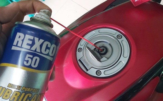 Hal ini juga berlaku pada tutup tangki yang memakai model anak kunci kontak sebagai pembuka, piranti ini juga tidak boleh luput dari pelumasan secara berkala. Ketika lubang kunci kontak atau tutup tangki sudah seret akibat berkarat, maka anak kunci bisa berpotensi patah karena ketika memutar anak kunci kontak akan dipaksa dalam kondisi seret yang berakibat anak kunci akan mudah bengkok bahkan berpotensi bisa patah.