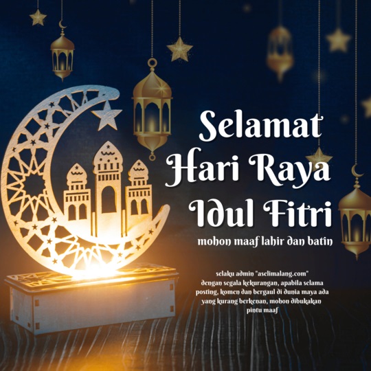 Saia, selaku admin blog “aselimalang.com”, menghaturkan Selamat Idul Fitri 1443 H. Apabila selama bergaul, membuat artikel, berkomentar dan berkawan di dunia maya, ada kesalahan baik sengaja atau tidak yang menyinggung pihak lain, saia mohon dibukakan pintu maaf ya