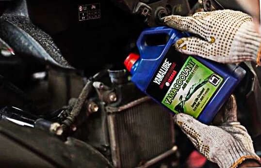 Langkah kedua, gunakan Yamaha coolant pada sistem pendingin radiator. Fungsi cairan ini adalah untuk menjaga agar suhu mesin kendaraan tetap stabil. Minimal ganti cairan coolant setahun sekali, jika tidak diganti secara berkala dapat mengganggu kinerja komponen lainnya.