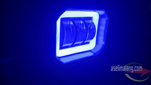 lampu LED berisi 3 lensa yang komplit dengan ringlight alias angel eyes. Lampu yang sering juga disebut daymaker ini jadi pilihan saia karena nggak ribet pasangnya. Setelah browsing sana-sini, malah gak jadi order online karena ketemu penjual yang wong Malang. Meski lokasi rada pucuk di Madyopuro Malang, akhirnya saia sambangi juga, hehhehe. Si mas Tanto ini, memang fokus dunia perlampuan, mulai lampu utama, lampu tambahan hingga lampu strobo. Singkat cerita, mahar IDR 130.000 pun si LED daymaker mini dibungkus dan masuk box si bleki.