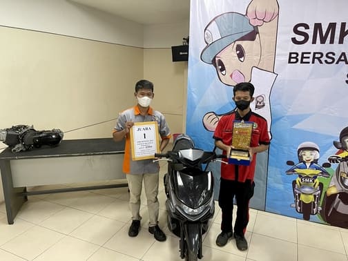 “ Kami menguji seluruh rangkaian kegiatan yang berhubungan dengan kejadian sehari-hari di bengkel mulai dari menerima konsumen dengan baik, memperbaiki motor, sampai mengembalikan motor konsumen yang sudah di service. Sehingga kegiatan seperti ini bisa membentuk mental siswa agar siap terjun ke bengkel ketika sudah lulus,” tambahnya.