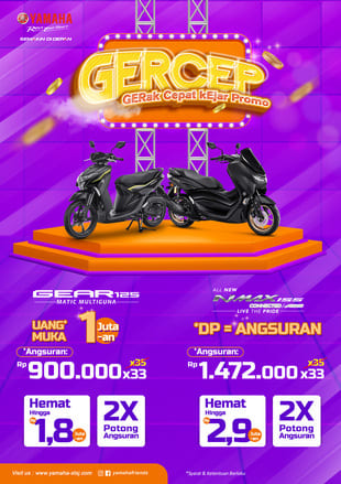 Gerak Cepat Kejar Promo bagi kamu yang ingin membawa pulang skutik Yamaha Gear 125 dan Yamaha All New NMAX. PT. Surya Timur Sakti Jatim (Yamaha STSJ) selaku distributor sepeda motor dan suku cadang Yamaha memberikan penawaran spesial bagi konsumen setia Yamaha dalam program bertajuk “Gercep” yang berlangsung sampai akhir September 2022.