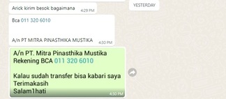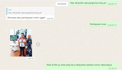 Komunikasi antara konsumen dengan staf dealer pun intens, bahkan sesaat sebelum mengirim unit motor pun dikabari, kalau hendak berangkat alias OTW kirim motor ke alamat