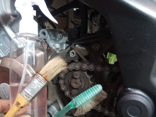 Jamak bila pada motor, ada kerak sisa pelumas rantai yang menempel pada rantai, gir serta bagian lain seperti cover gir depan. Biasanya sih, yang umum digunakan untuk membersihkan, termasuk saia, adalah bensin. Cukup semprot atau kuaskan bensin beberapa kali, bakal meluruhkan kerak oli, pelumas dan kotoran. Namun, repotnya, masih perlu dibilas lagi dengan sabun. Selain menghilangkan sisa bensin juga baunya. Dobel kerja, wehehehehehe, kepingin rasanya ada yang praktis dan sekali pakai tanpa resiko merusak kondisi si logam kotor