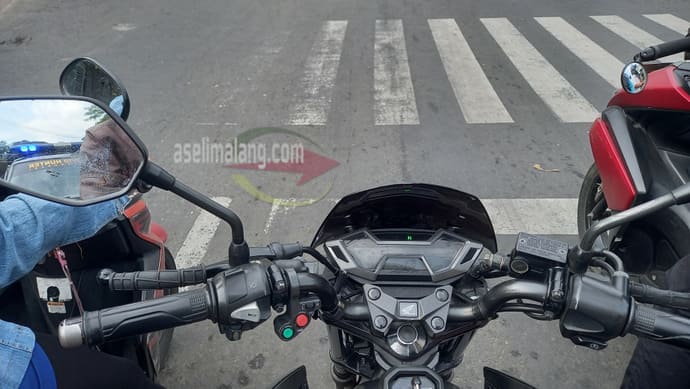Dan dimulailah aktifitas hari itu. Berangkat kerja, wira-wiri ke beberapa lokasi kerjaan, hingga akhirnya hendak beranjak pulang di penghujung hari. Lumayan seharian memang, dan kondisi jalan yang waktu itu di beberapa titik kota Malang macet, namun digabung dengan jalan lengang di pinggiran kabupaten yang memberi kesempatan betot gas. Rata-rata berkendara normal saja, dalam kota palingan 40-60 kpj, dan sesekali bejek gas. Pokok-e, mode berkendara normal harian