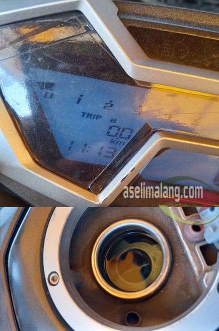 Posisi BBM sampai perbatasan mulut tangki si bleki. Tak lupa, reset tripmeter B ke posisi 0 supaya mudah mengukur jarak tempuh. Metode pengukuran ya seperti biasa, full to full saja