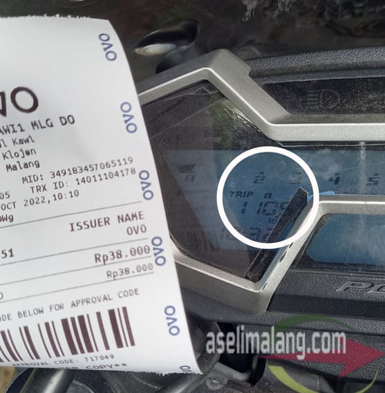 Setelah mengisi, melipir keluar SPBU, lalu berhenti sebentar, cek trip meter B yang tadi pagi saat isi penuh saia reset ke 0. Tercatat, angka 110,5 kilometer, jarak tempuh saia hari ini. Weh, pantesan lumayan capek juga, hehehehe