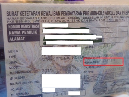 Yuk, cermati STNK motor masing-masing ya masbro.. Kalau memang identitas pada STNK, terutama pada warna TNKB memang sudah warna putih, namun masih mendapatkan plat nopol hitam, nah, itu boleh deh diganti warna sendiri