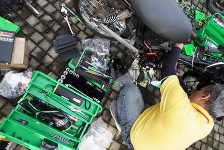Pada program konversi kali ini perkakas Tekiro digunakan untuk mendukung para UMKM dalam melakukan konversi dan menjadi standar tools bagi perubahan motor dari penggerak BBM menjadi motor listrik.
