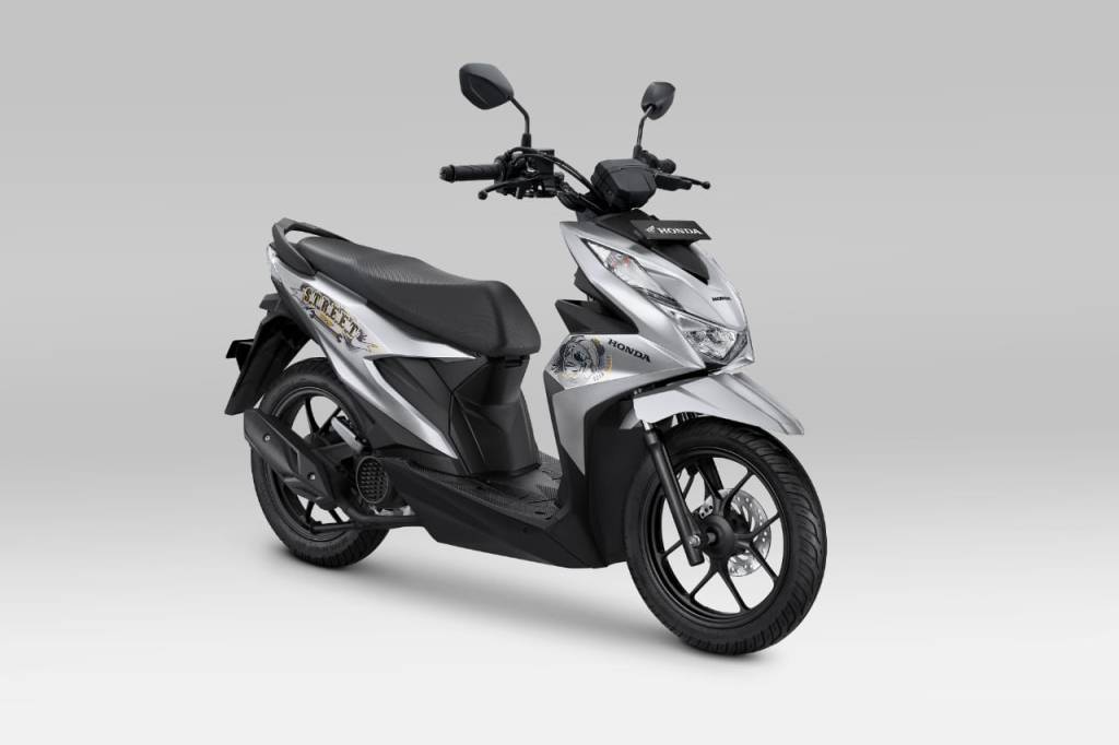 Penyegaran tampilan terkini juga diaplikasikan pada skutik bergaya street style yakni New Honda BeAT Street. Pilihan varian ini hadir dengan penyegaran stripe bergaya artistik sesuai karakter anak muda perkotaan saat ini. Tipe ini memiliki dua pilihan warna yakni Street Black dan Street Silver.