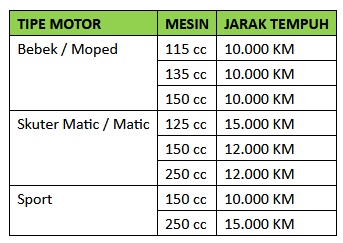 Adapun jarak yang direkomendasikan untuk pergantian filter udara sebagai berikut :