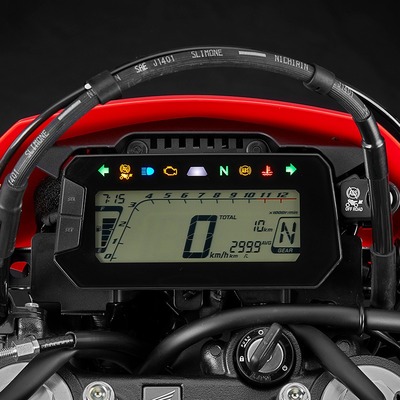Panel meter kekinian adopsi model digital, dengan banyak informasi tersaji. Plus, sektor penerangan yang gunakan lampu LED untuk lampu utama serta lampu sein. Serta mengurangi waswas buat petualang trabas, tangki BBM mampu muat bahan bakar lebih banyak, yaitu capai angka 7,8 liter