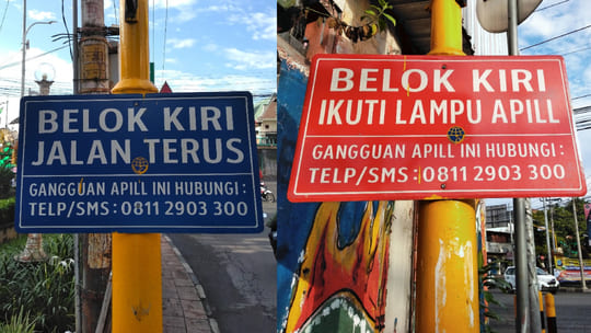 Di beberapa lokasi, di kota Malang saja, ada titik persimpangan dengan lampu TL yang menerapkan aturan berbeda. Misal di persimpangan Rajabali, itu lho, daerah heritage Kayutangan, kendaraan diperbolehkan belok kiri langsung. Dengan terpasangnya petunjuk kelir biru, BELOK KIRI JALAN TERUS. Namun, di lokasi lain, salah satunya di persimpangan masjid Sabilillah Blimbing, yang tertulis adalah petunjuk BELOK KIRI IKUTI LAMPU APILL/TL