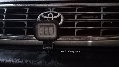 Usia yang masuk 22 tahun, membuat mika lampu depan (bukan beling/kaca) jadi mulai menguning. Wajar sih, kena panas bohlam, kena panas sinar matahari dan sebab lain, menurunkan beningnya mika lampu ini. Karena anggaran buat poles mika lampu belum ada, inisiatif-lah pasang lampu tambahan untuk sementara, mungkin sementahun 😆