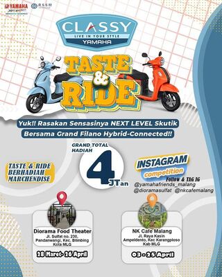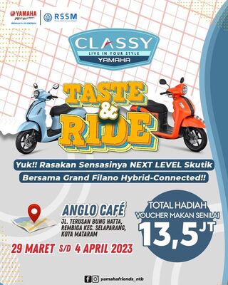 Hal ini diantaranya gegara antusias masyarakat akan produk teranyar Yamaha, yaitu Grand Filano Hybrid-Connected yang terus dan terus melonjak. Oleh karena itu, PT. Surya Timur Sakti Jatim (Yamaha STSJ) selaku distributor resmi Yamaha area Jawa Timur, Kalselteng, Kaltim, dan Nusa Tenggara memberikan kesempatan kepada konsumen untuk melakukan test ride skutik generasi Classy Yamaha di beberapa lokasi spesial