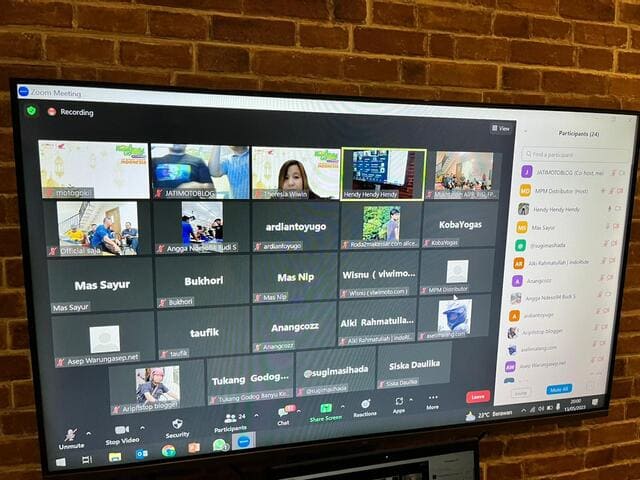 Kumpul bersama, dan agenda perdana malam adalah silaturahmi selain offline dengan yang hadir langsung, juga disambung dengan silaturahmi online via zoom dengan blogger dan vlogger lain tanah air, seperti mas Taufik TMC, om Yoga Kobayogas, mas Ari Pitstop, blogger Jateng, blogger DIY serta blogger Jabar dan yang paling jauh mas Wahid Bakulkangkung Jayapura. Termasuk perwakilan dari MPM Honda Jatim bu Wiwin, mbak Siska dari AHM, dan pak Dody dari TEKIRO