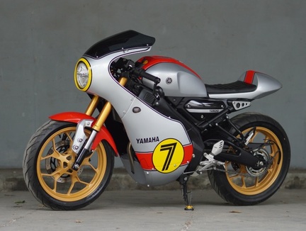 “Sebagai custom enthusiast saya cukup tertarik untuk ikut meramaikan jalannya event CustoMAXI & Yard Built di tahun ini. Sebelumnya memang sudah pernah garap XSR 155 juga bergenre tracker futuristic untuk project Yard Built di tahun 2020, nah untuk tahun ini saya datang dengan ide yang berbeda, yaitu Caferacer. Konsepnya sendiri saya mengambil special livery 60th WGP Yamaha, hasilnya pun cukup memuaskan dan aya optimis bisa terpilih sebagai salah satu Grand Finalis,” terang Atenk.
