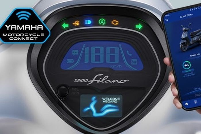 Didukung pula oleh kelengkapan teknologi Y-connect yang menghubungkan motor Grand Filano dengan gadget pengendara. Mulai posisi kendaraan, konsumsi bahan bakar hingga pemantauan kondisi mesin-oli dan lain-lain bisa dilakukan dari gadget di genggaman tangan
