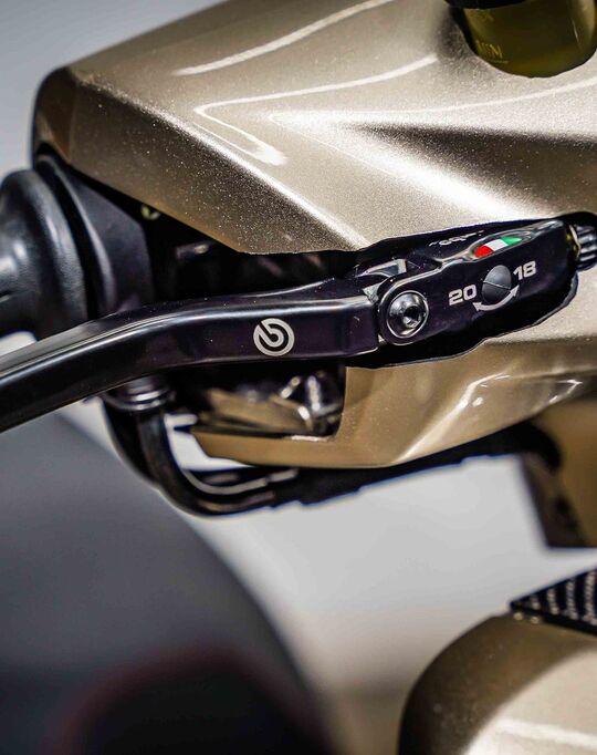 Ubahannya hanya seputar kaki-kaki dan pengereman saja ternyata. Tapi jangan salah, bisa dongkrak tampilan seketika. Master rem depan bawaan diganti dengan keluaran Brembo bertipe RCS 15 Corsa Corta berikut tuas rem depan dan belakang
