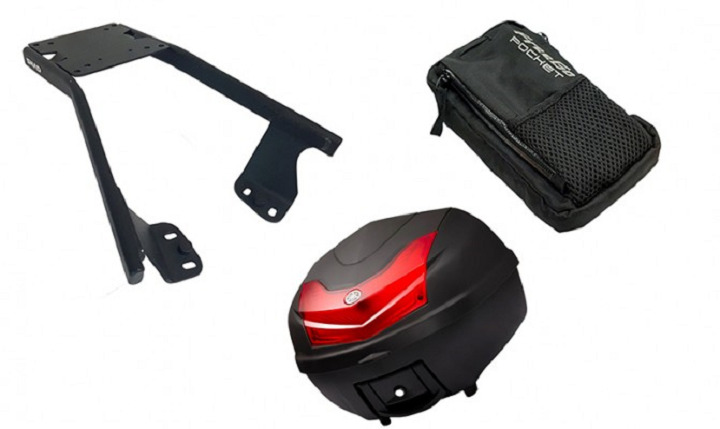 REAR CARRIER , berfungsi untuk menopang Top Box diatas. Istilah lainnya adalah braket box belakang. Berbahan besi kuat, memiliki desain sporty dan telah teruji dengan spesifikasi Yamaha Genuine Accessory. HED untuk produk ini sekitar IDR 404.000.