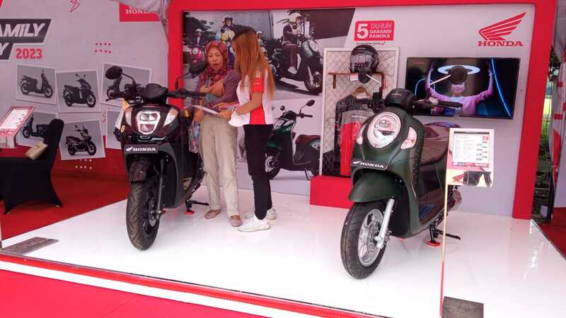 Banyak ragam pilihan motor matic yang dapat dilihat oleh pengunjung Honda AT Family seperti model terbaru Honda Scoopy berhasil menarik perhatian pengunjung gelaran Honda AT Family ini. Hadir dengan design dan pilihan warna terbaru, Honda Scoopy produksi PT Astra Honda Motor (AHM) yang telah dilengkapi jaminan garansi rangka hingga 5 tahun tanpa batas jarak tempuh (kilometer).