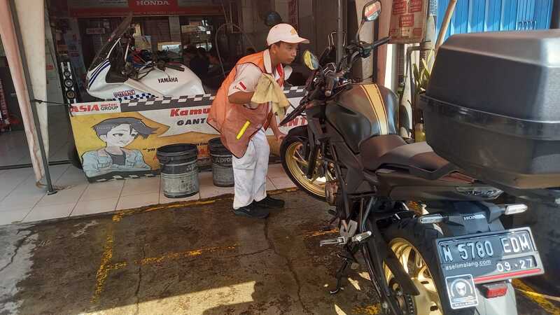 Fasilitas pembersihan sepeda motor sebelum service, kini memang sudah mulai banyak ditemukan di berbagai bengkel resmi termasuk AHASS. Salah satunya ya AHASS Asia Motor ini, yang sudah mengawali sejak beberapa tahun silam, jadi bisa dibilang pionir