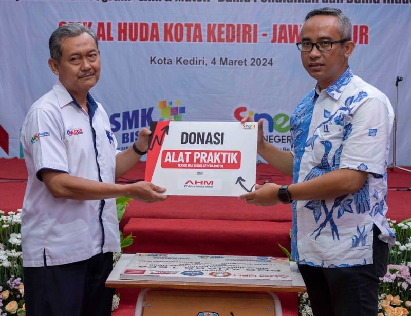Pada kesempatan kali ini PT Astra Honda Motor (AHM) bersama MPM Honda Jatim memberikan alat praktek yang diserahkan oleh General Manager Corporate Communication AHM Ahmad Muhibbuddin kepada Kepala Sekolah SMK Al Huda Muh. Suhariyono.