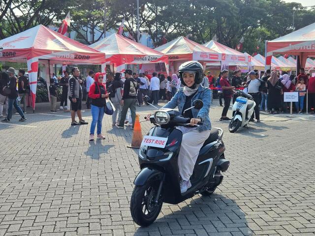 Pada kesempatan ini, peserta maupun pengunjung dapat merasakan langsung berkendara dengan Honda EM1 e: dan Honda Stylo 160 dalam sesi riding test.