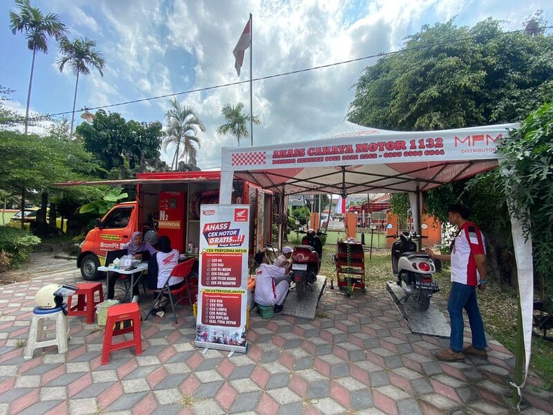 “Melalui program layanan ini, kami ingin turut serta meyemarakkan peringantan Hari Kemerdekaan Republik Indonesia di lingkungan tempat tinggal konsumen yang biasanya diisi dengan berbagai kegiatan seperti lomba khas Agustusan. Kami berharap program ini dapat dimanfaatkan oleh konsumen setia Honda untuk melakukan pemeliharaan sepeda motor kesayangan agar tetap nyaman dan aman saat merayakan hari paling istimewa bagi Bangsa Indonesia..” Kata M. Bondan Priyoadi, Technical Service Division Head MPM Honda Jatim.