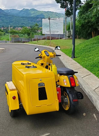Minat? Aseli kece sih ini garapan. Biaya modifikasi termasuk bahan (nggak termasuk motor Fazzio), sekitar IDR 15-18 jutaan. Konsumen terima jadi deh. Mantap po ra???