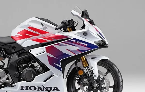 Siluet huruf R pada fairing depan CBR ini tersamar dengan gradasi, namun bisa dinikmati penuh, menegaskan DNA racingnya. Fitur lain seperti mesin 250cc 2 silinder bertenaga, throttle by wire, rem ABS, quickshifter, assist & slipper clutch, serta 3 mode riding yang bisa dipilih melalui tombol di panel setang kiri. Yang membedakan paling hanya penempatan lampu sein depan serta penambahan mata kucing/reflektor pada sepatbor depan