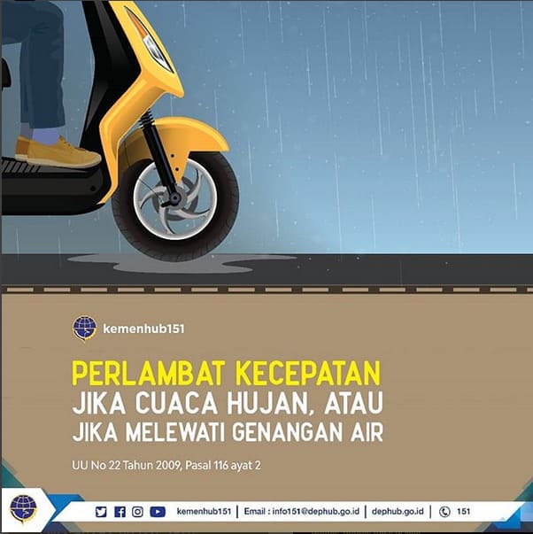 Sedangkan dari sisi aturan, ternyata sudah diatur dalam undang-undang alias ada payung hukumnya. Yaitu UU Nomor 22 Tahun 2009 tentang Lalulintas dan Angkutan Jalan, pada pasal 116 ayat 2 huruf (C). Disitu jelas disebutkan : mengharuskan pengemudi untuk memperlambat kendaraannya jika menemui genangan air