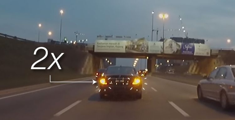 Lagi-lagi contoh di Jepang, untuk membalas, bisa dengan menyalakan lampu dim/lampu jauh sekali. Alias dikedipkan saja lampu dim-nya, nggak perlu lama dan berkali-kali, cukup sekali.