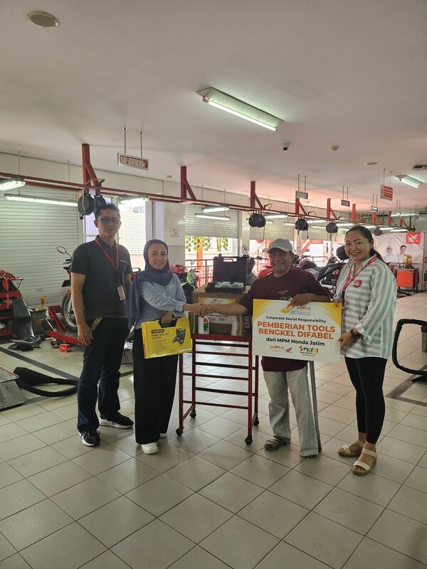 Di tahun 2025 ini, MPM Honda Jatim memperluas jangkauan program pemberdayaan ekonomi untuk komunitas difabel dengan memberikan bantuan pengembangan usaha bengkel berupa modal usaha dalam bentuk sparepart dan peralatan (tools) tambahan, serta pelatihan keterampilan teknis. Nggak jauh-jauh dari tema otomotif juga